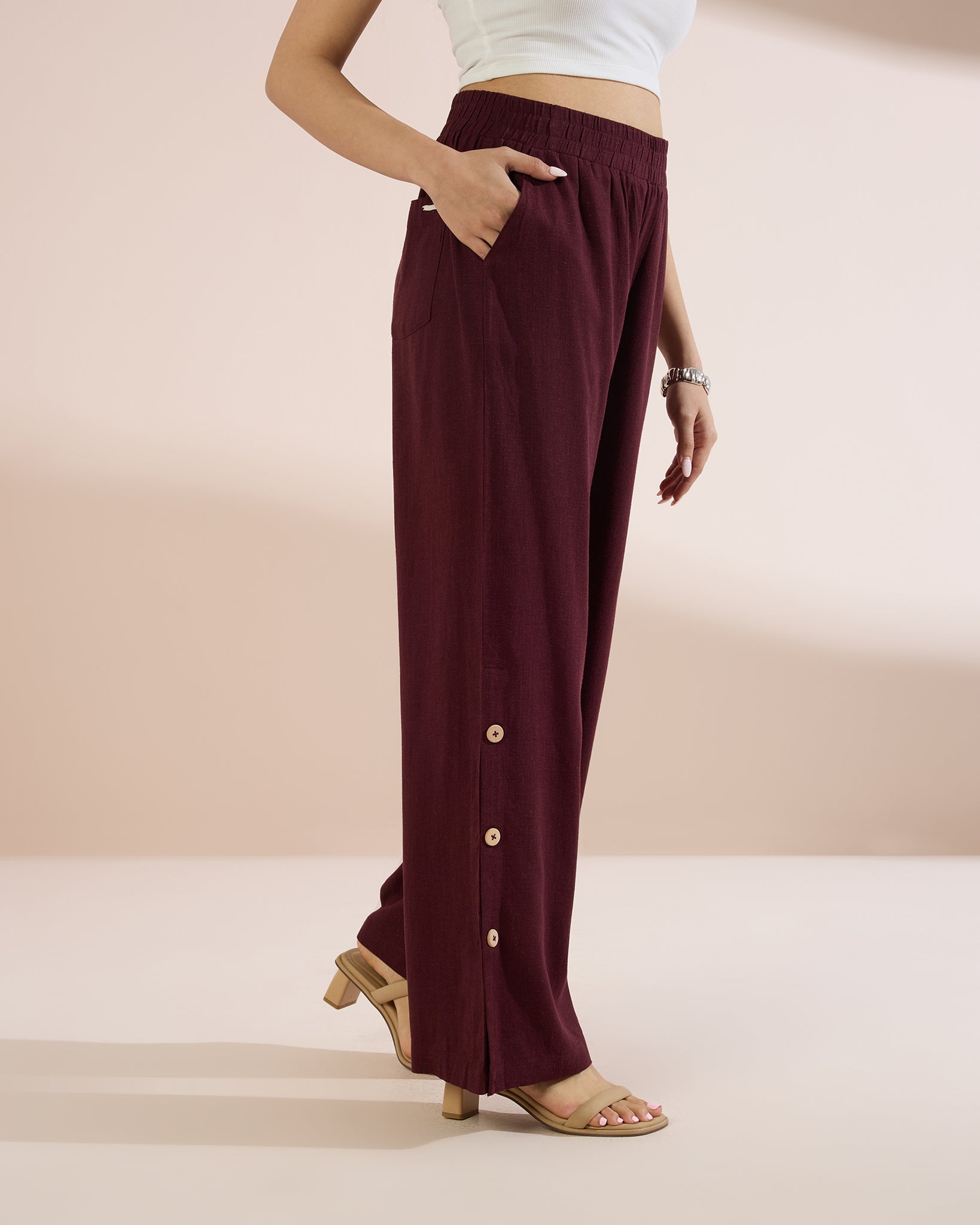 Crafted from breathable, soft linen, these trousers offer a relaxed fit that moves with you, perfect for both workdays and weekend escapes. The button-down detail adds a subtle touch of sophistication, while the versatile silhouette pairs seamlessly with everything from crisp shirts to casual tees. Comfort, style, and simplicity - all in one staple piece.